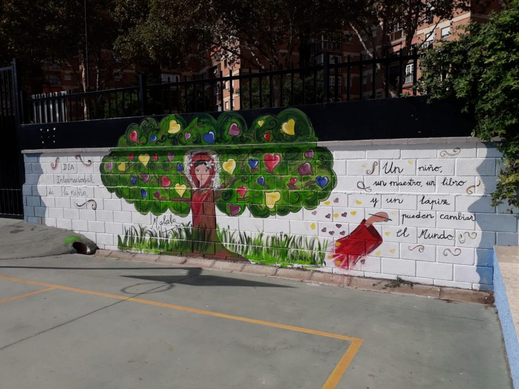 Ayer estuvimos en el CEIP Manolo Garvayo de Málaga celebrando este día. Se realizó una representación de Malala y sus acciones contra la exclusión de las niñas en las escuelas. Un mural conmemorará para siempre este día en las paredes del colegio. Fue descubierto por la Concejala de Sostenibilidad y Derechos Sociales, Gema del Corral y una alumna en representación de todas las niñas.